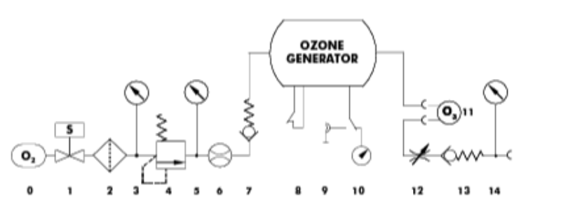 出口針閥后面的耐臭氧壓力表顯示臭氧系統(tǒng)反壓,即臭氧氣體流入的壓力。